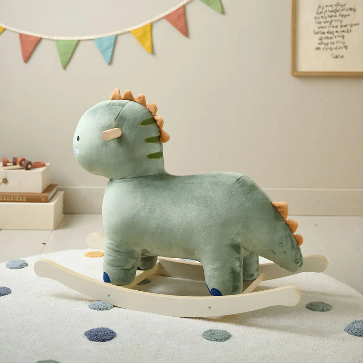 Bringen Sie Spaß und Komfort ins Kinderzimmer mit diesem liebevoll gestalteten Plüsch-Dinosaurier-Schaukelspielzeug. Der weiche, samtige Stoff und die stabile Holzschaukel machen ihn zum perfekten Begleiter für kleine Entdecker.
